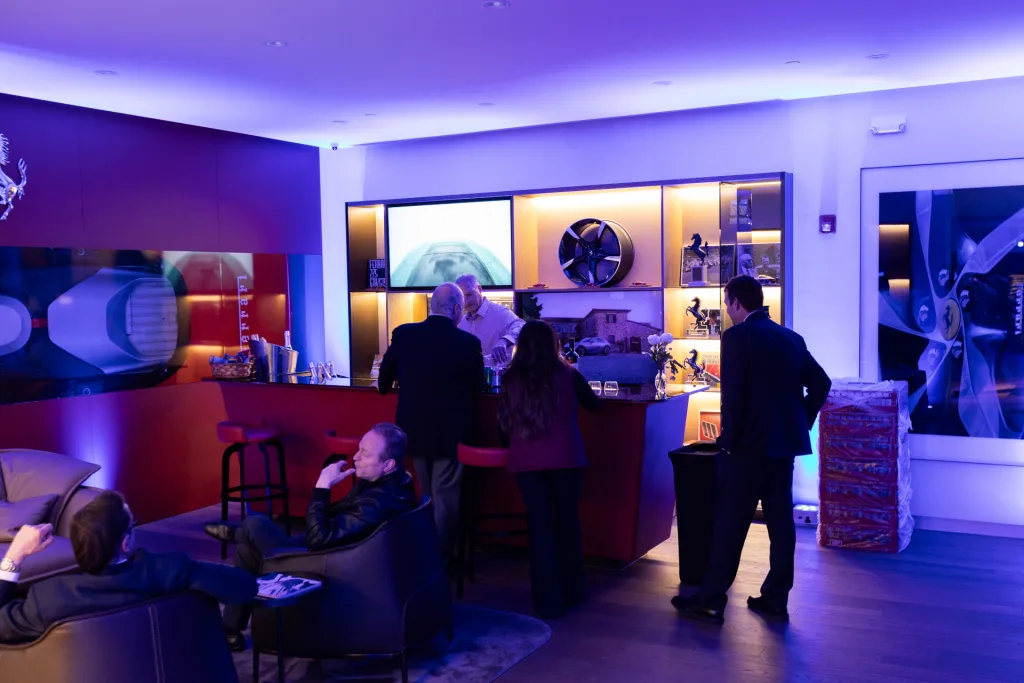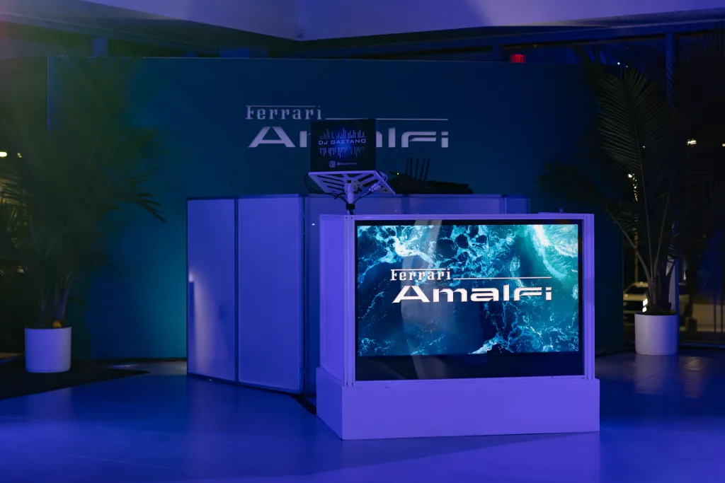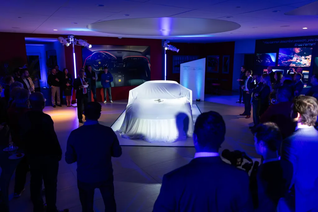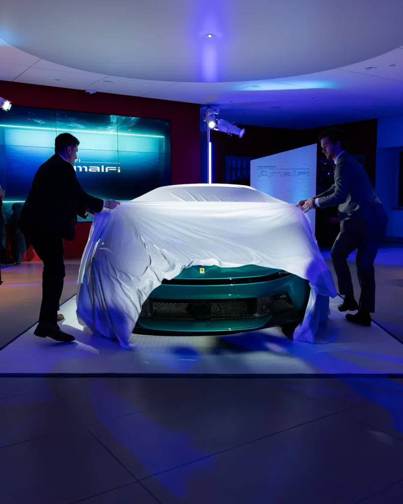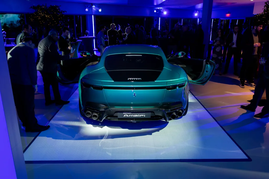 On the evening of Friday, January 16th, Ferrari Philadelphia welcomed clients to our Newtown Square dealership for an intimate, first look at the all-new Ferrari Amalfi. The event featured an unveiling of the newest addition to the Ferrari lineup in an immersive environment inspired by the Amalfi Coast—the very place that influenced the car’s design and spirit. Lemon trees and palms filled the space where guests were invited to try an elegant selection of coastal, Italian cuisine and handcrafted cocktails. Furthering the effect, lights basked the showroom in an ocean hue while the DJ kept the mood light and vibrant. Our General Manager, Jorge Figueroa, presented the finer details of the Amalfi before the crowd was invited to inspect the car for themselves. The night finally came to a close after several hours of great conversation amongst Ferraristas.