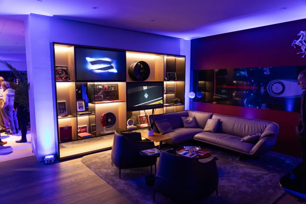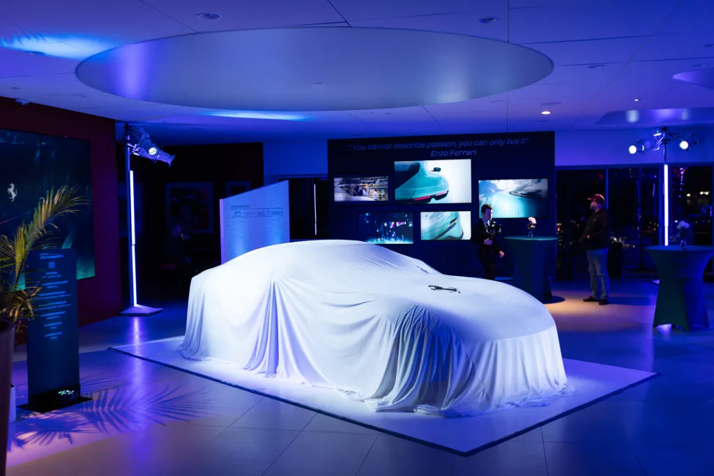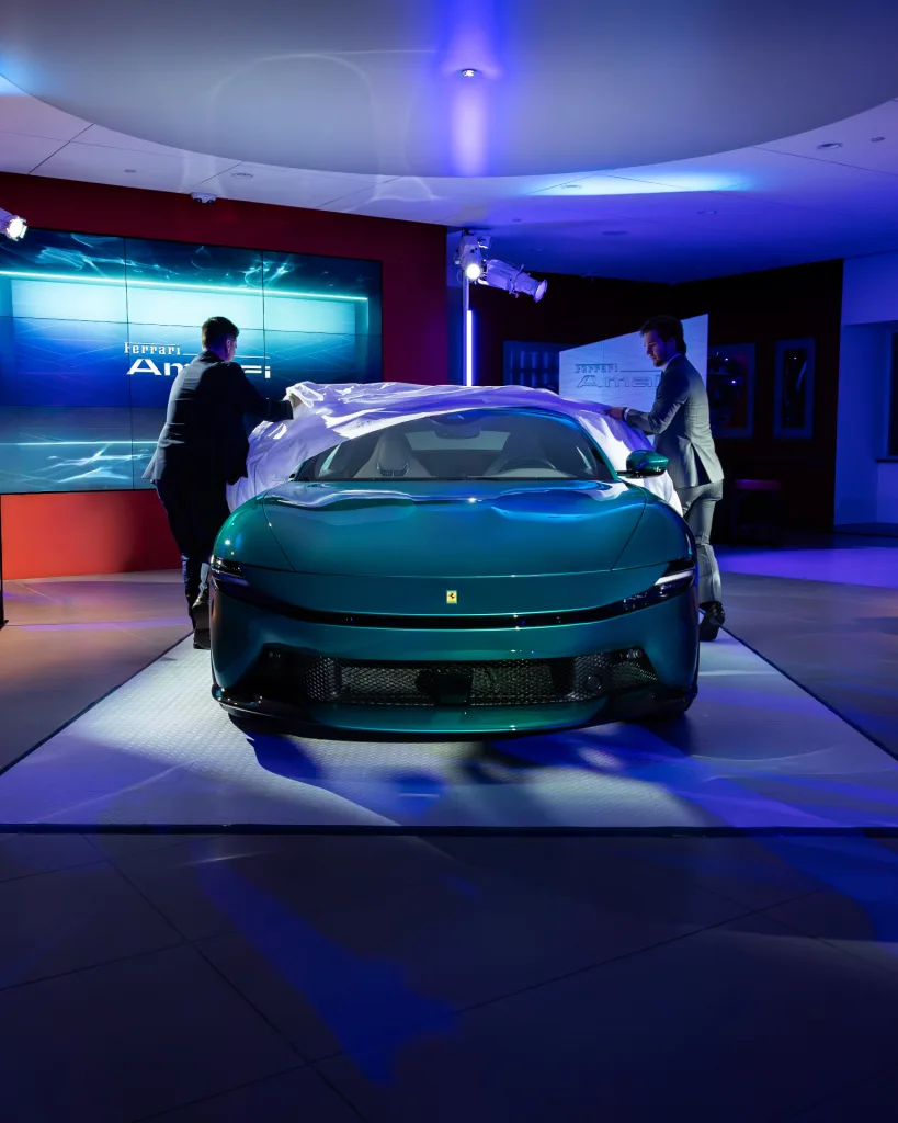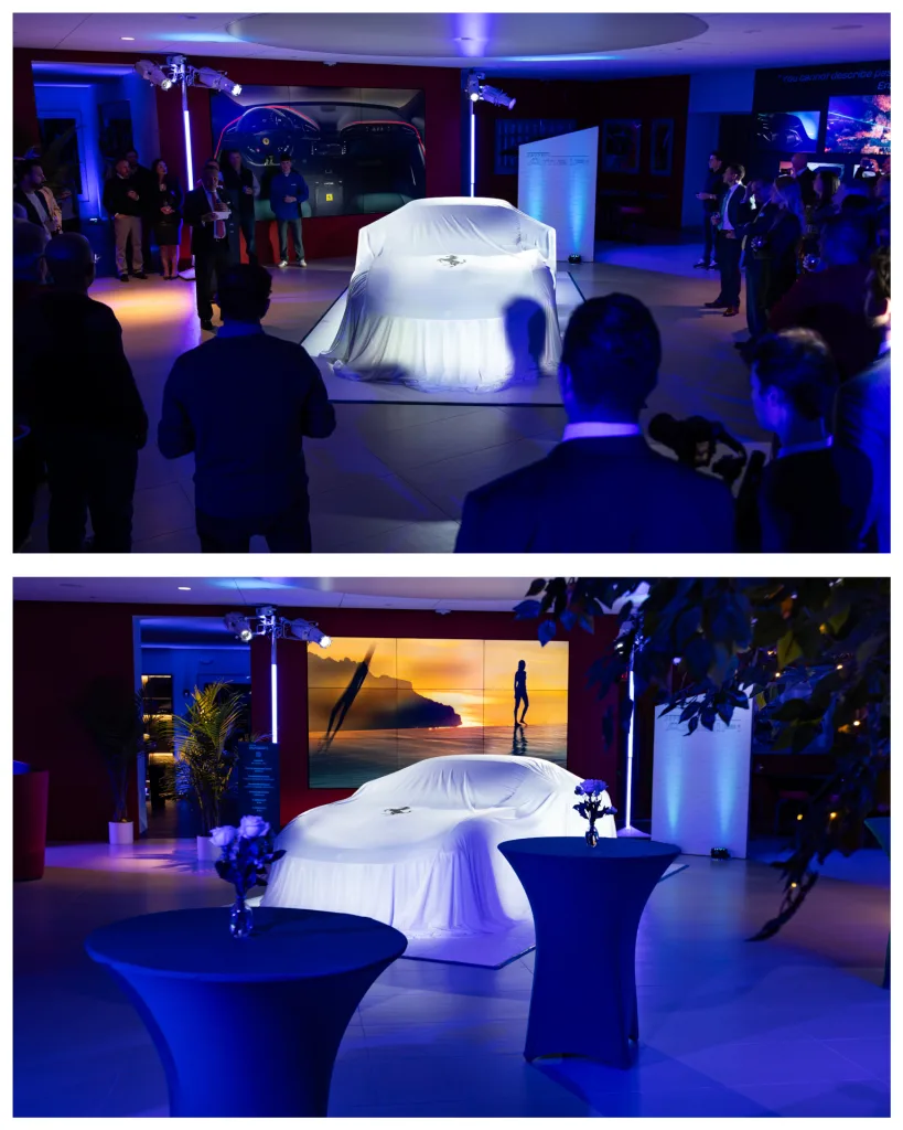 On the evening of Friday, January 16th, Ferrari Philadelphia welcomed clients to our Newtown Square dealership for an intimate, first look at the all-new Ferrari Amalfi. The event featured an unveiling of the newest addition to the Ferrari lineup in an immersive environment inspired by the Amalfi Coast—the very place that influenced the car’s design and spirit. Lemon trees and palms filled the space where guests were invited to try an elegant selection of coastal, Italian cuisine and handcrafted cocktails. Furthering the effect, lights basked the showroom in an ocean hue while the DJ kept the mood light and vibrant. Our General Manager, Jorge Figueroa, presented the finer details of the Amalfi before the crowd was invited to inspect the car for themselves. The night finally came to a close after several hours of great conversation amongst Ferraristas.