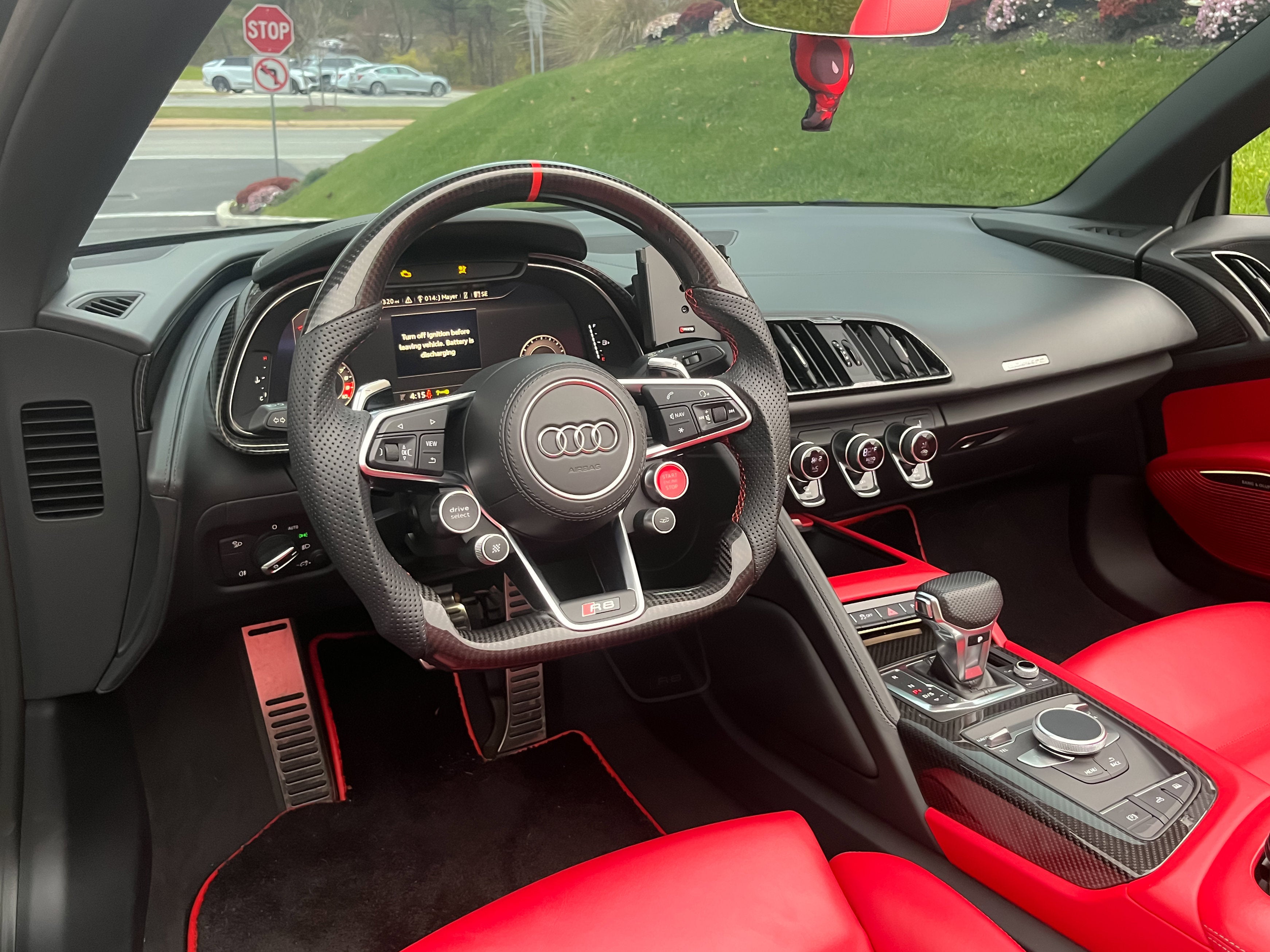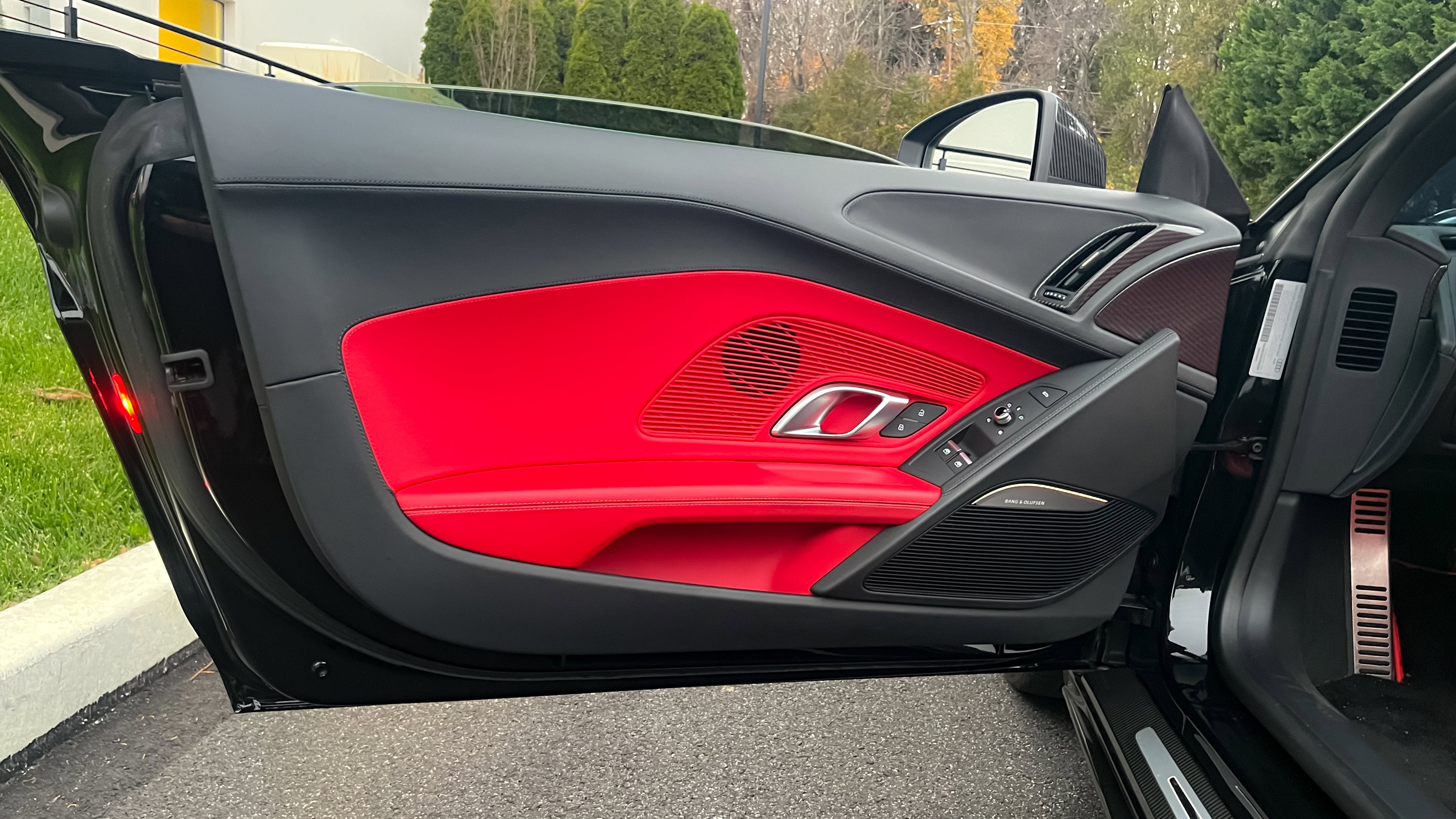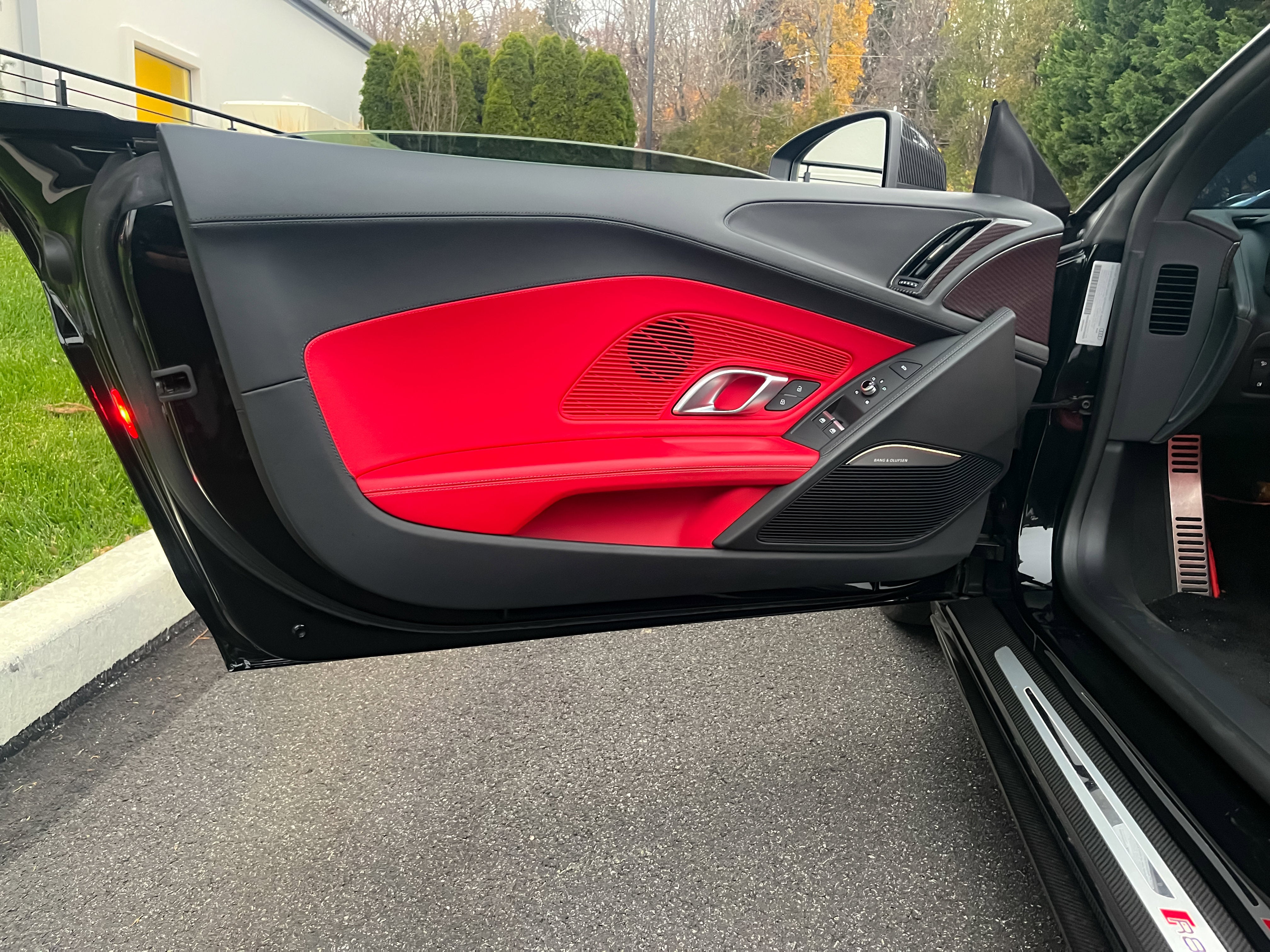 Ferrari Philadelphia is pleased to offer this 2021 Audi R8 Spyder V10 Performance with only 35,587 miles. This vehicle is out of its original factory warranty and is being sold As-Is. The exterior color of this Audi is finished in Mythos Black Metallic complemented by an Express Red leather interior. The options on this R8 Spyder V10 Performance include: