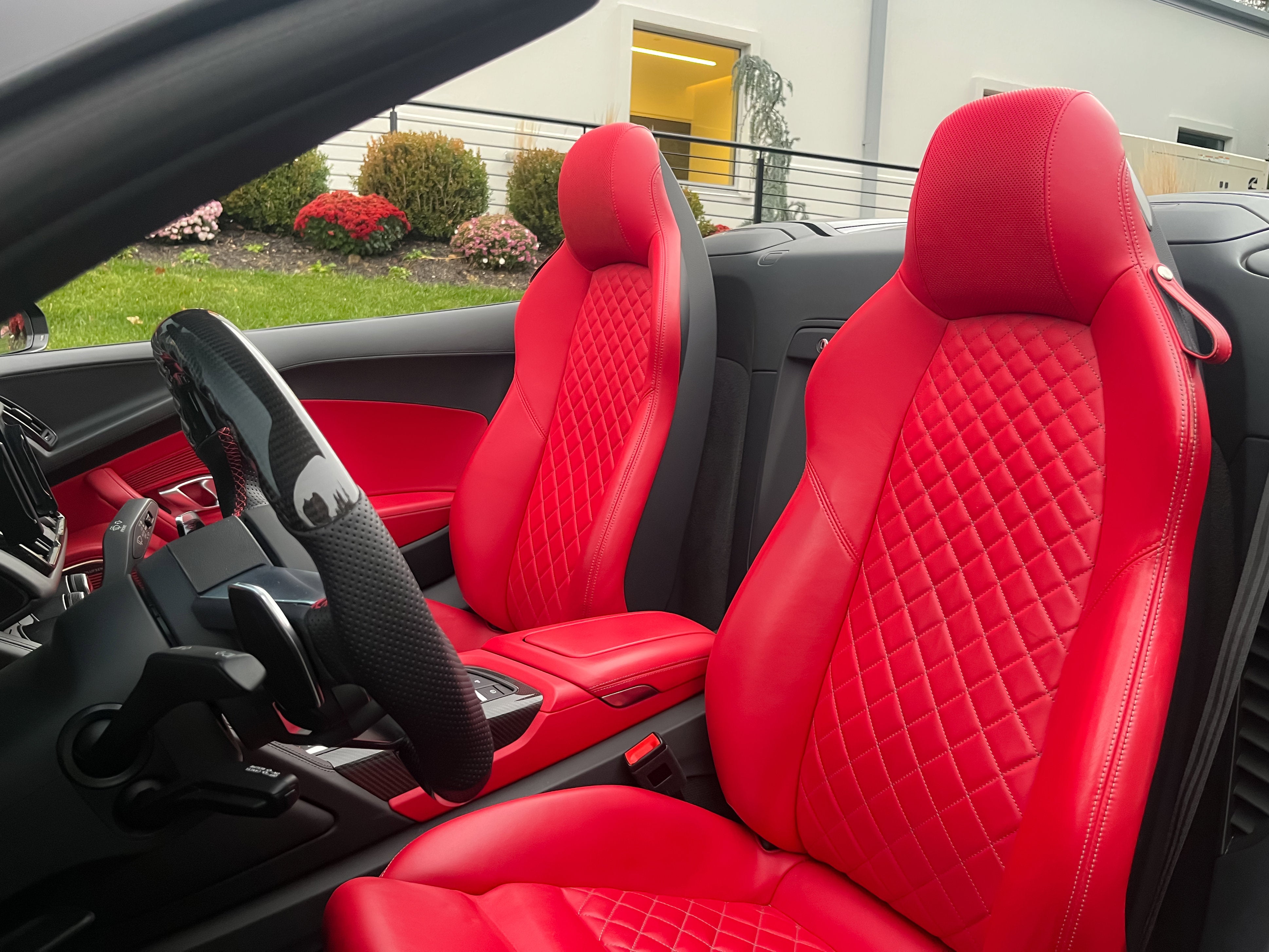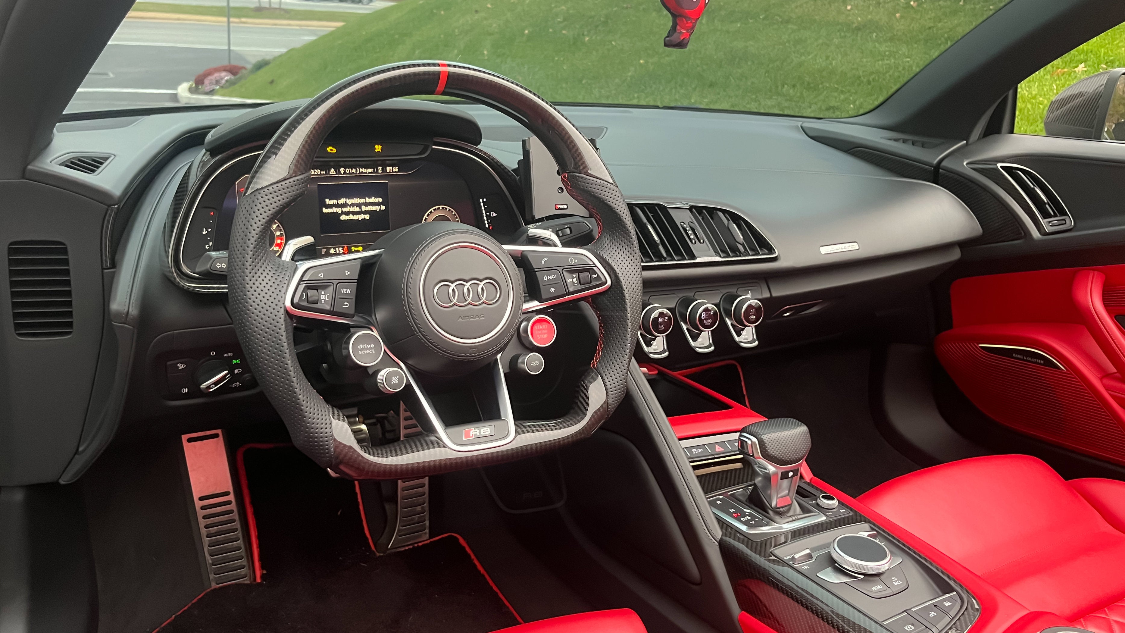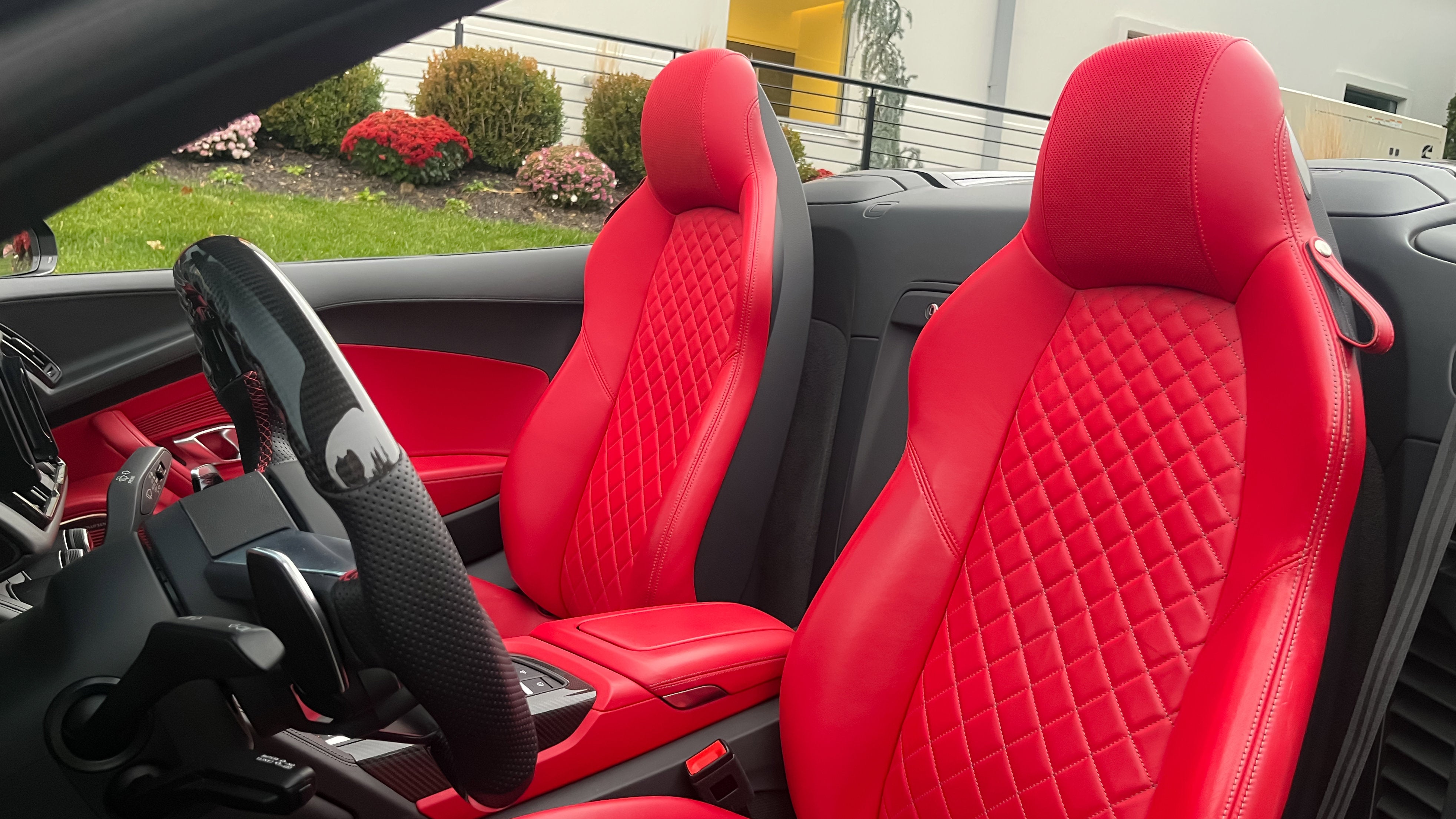 Ferrari Philadelphia is pleased to offer this 2021 Audi R8 Spyder V10 Performance with only 35,587 miles. This vehicle is out of its original factory warranty and is being sold As-Is. The exterior color of this Audi is finished in Mythos Black Metallic complemented by an Express Red leather interior. The options on this R8 Spyder V10 Performance include: