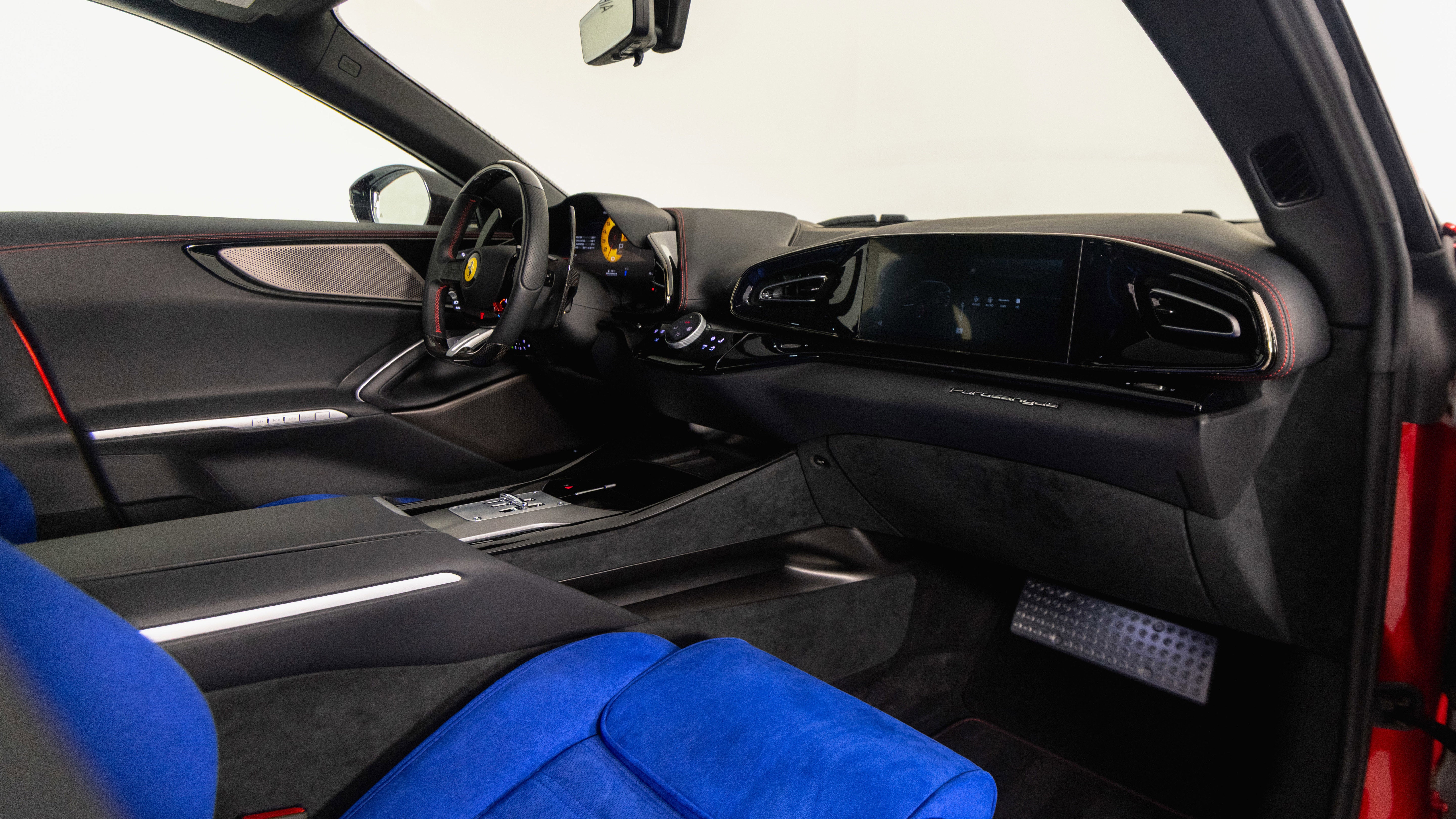 Ferrari Philadelphia is pleased to offer this 2025 Ferrari Purosangue with only 309 miles. This vehicle is being sold with the balance of the factory warranty valid until 05/29/2028 & is under the Ferrari Certified Pre-Owned program. The Ferrari Purosangue is the first four-door, four-seater ever built by Ferrari, redefining the boundaries of a modern GT. It features a mid-front-mounted, naturally aspirated 6.5-liter V12 engine that produces 725 cv and delivers instantaneous throttle response with a signature Ferrari soundtrack. Built on an all-new chassis, the Purosangue achieves perfect 49:51 weight distribution, ensuring outstanding dynamic balance and handling. Its active suspension system and cutting-edge vehicle dynamics technologies offer unparalleled performance across a wide range of conditions. With a luxurious, driver-focused cabin and innovative rear-hinged doors, the Purosangue blends everyday usability with unmistakable Ferrari character. The exterior color of this Ferrari is hand-finished in Rosso Magma complemented by a Nero leather and Blu Elettrico alcantara interior. The options on this Purosangue include: