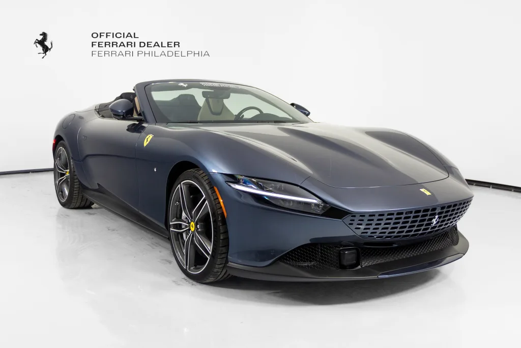 Ferrari Philadelphia is pleased to offer this 2024 Ferrari Roma Spider with only 1,074 miles. This vehicle is being sold with the balance of the factory warranty valid until 10/31/2027 & is under the Ferrari Certified Pre-Owned Program. The Ferrari Roma Spider is a sophisticated convertible that blends timeless elegance with cutting-edge performance. Powered by a 620 cv turbocharged V8 engine, it delivers exhilarating acceleration and driving dynamics, true to Ferrari's grand touring tradition. Its soft-top design, the first on a front-engine Ferrari since the 1960s, ensures a refined open-air experience without compromising style or comfort. Inside, the dual-cockpit layout and luxurious materials reflect the Roma Spider's seamless fusion of innovation and Italian craftsmanship. The exterior color of this Ferrari is hand-finished in Blu Roma complemented by a Tortora leather interior. The options on this Roma Spider include: