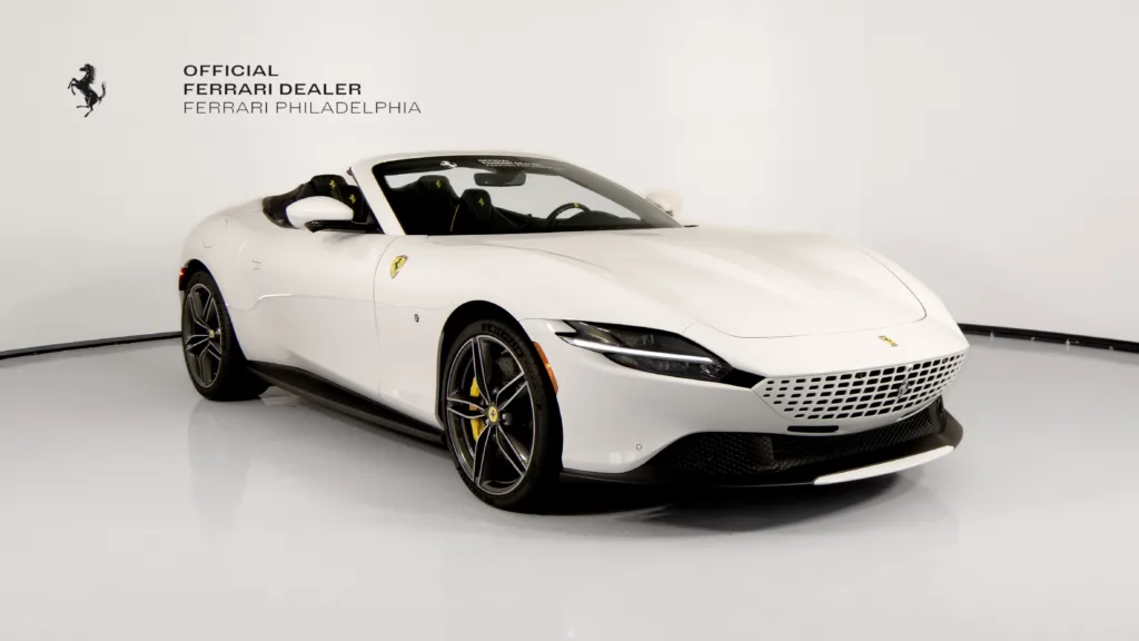 Ferrari Philadelphia is pleased to offer this 2026 Ferrari Roma Spider with only 61 miles. This vehicle is being sold with the balance of the factory warranty valid until 02/19/2029 & is under the Ferrari Certified Pre-Owned Program. The Ferrari Roma Spider is a sophisticated convertible that blends timeless elegance with cutting-edge performance. Powered by a 620 cv turbocharged V8 engine, it delivers exhilarating acceleration and driving dynamics, true to Ferrari's grand touring tradition. Its soft-top design, the first on a front-engine Ferrari since the 1960s, ensures a refined open-air experience without compromising style or comfort. Inside, the dual-cockpit layout and luxurious materials reflect the Roma Spider's seamless fusion of innovation and Italian craftsmanship. The exterior color of this Ferrari is hand-finished in Bianco Cervino complemented by a Nero leather interior. The options on this Roma Spider include: