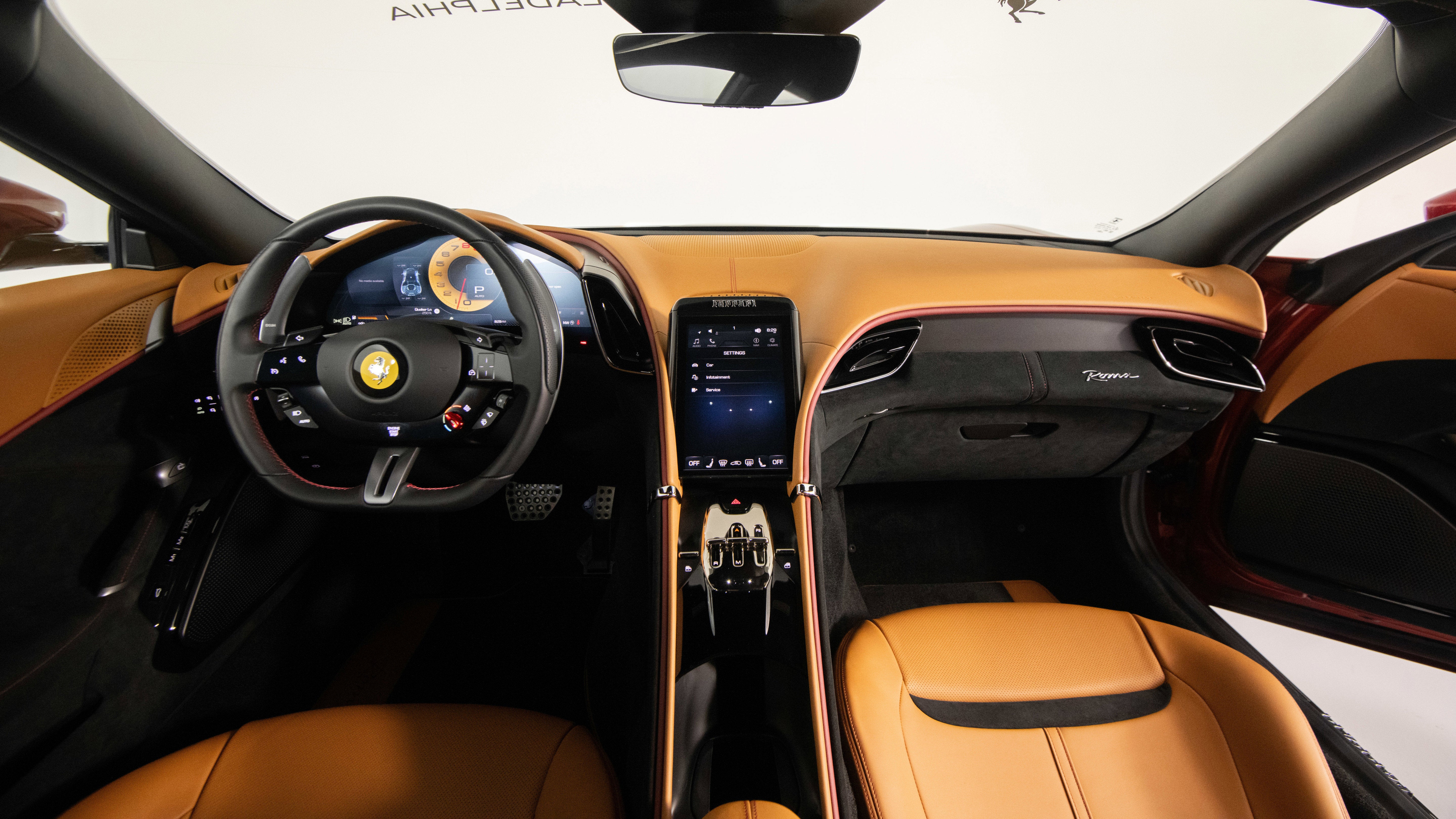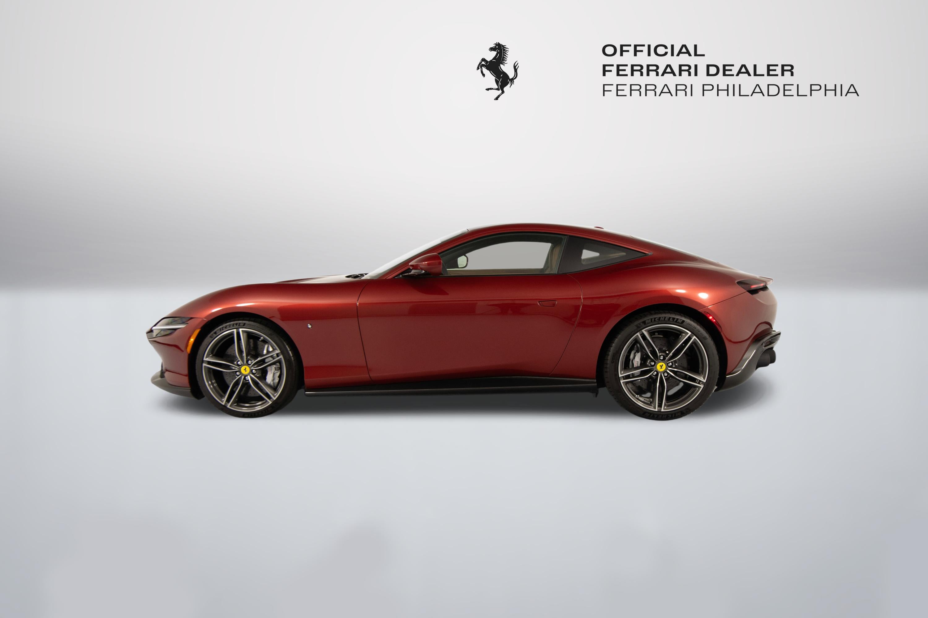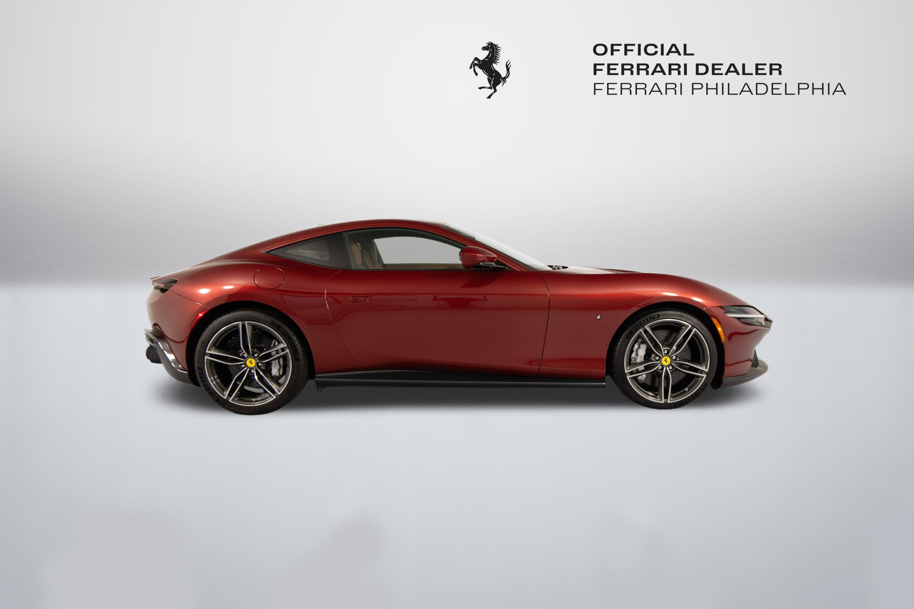 Ferrari Philadelphia is pleased to offer this 2022 Ferrari Roma with only 200 miles. This vehicle is under the Ferrari Certified Pre-Owned Program. The Ferrari Roma, the mid-front-engine 2+ coupe of the Prancing Horse, features refined proportions and timeless design combined with unparalleled performance and handling. With its distinctive flair and style, the car is a contemporary representation of the carefree, pleasurable way of life that characterized Rome in the 1950s and '60s. Its 3.9L Twin Turbocharged V8 has an output of 612hp at 7500 rpm and is coupled with the new 8-speed DCT gearbox that was introduced on the SF90 Stradale. The exterior color of this Ferrari is hand-finished in the Ferrari Historical Color Rosso Fiorano complemented by a Cuoio leather interior. The options on this Roma include: