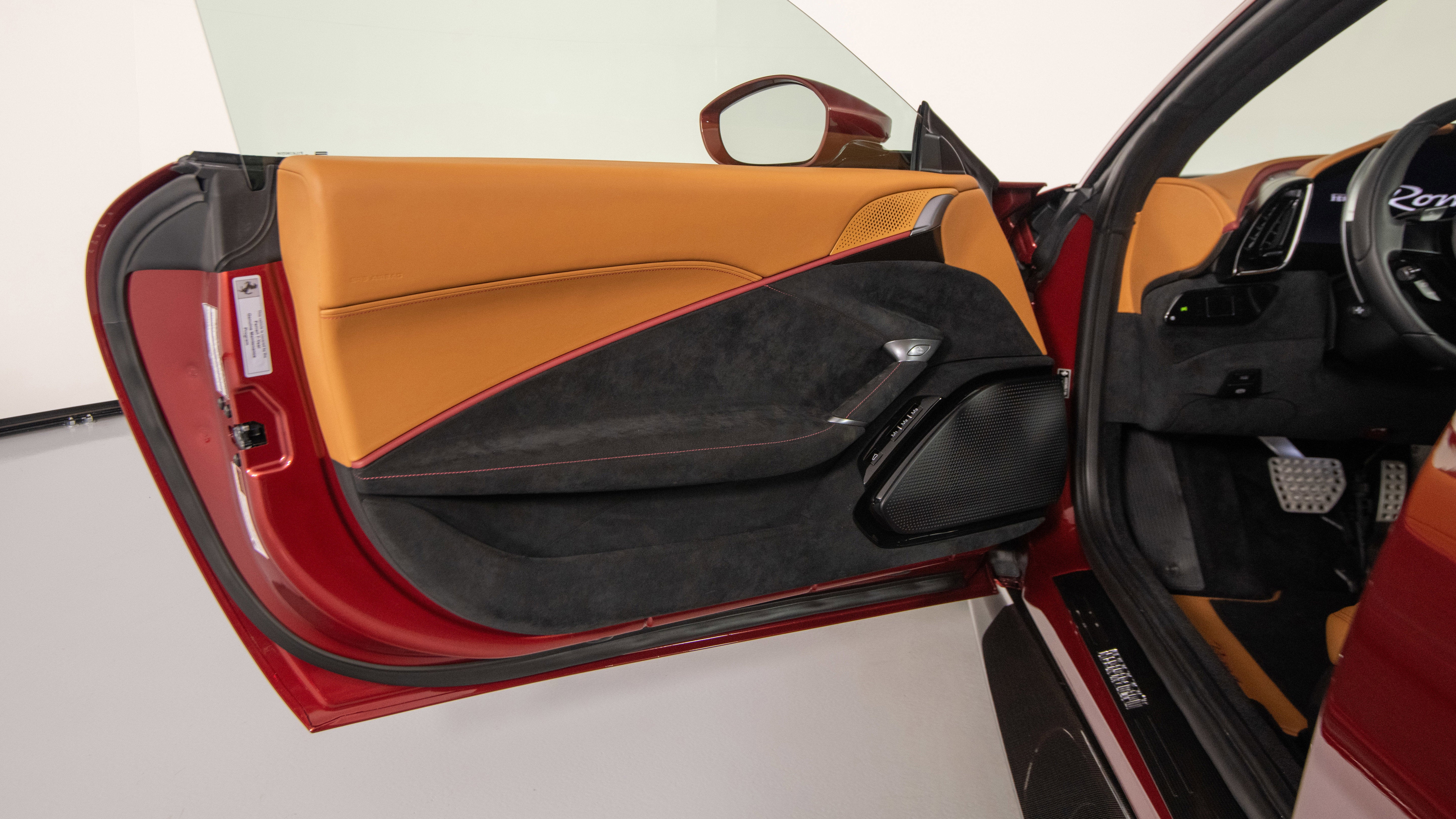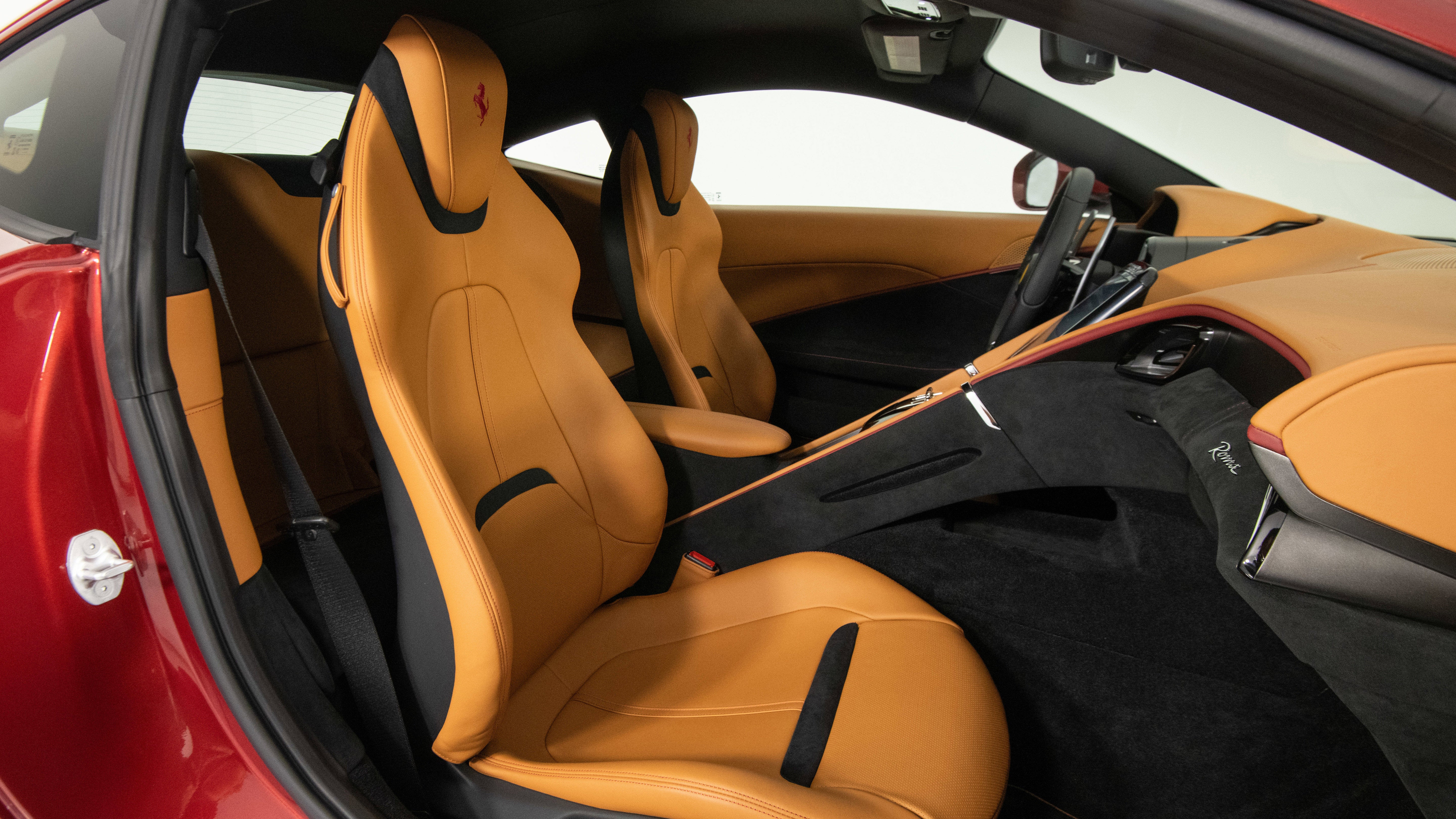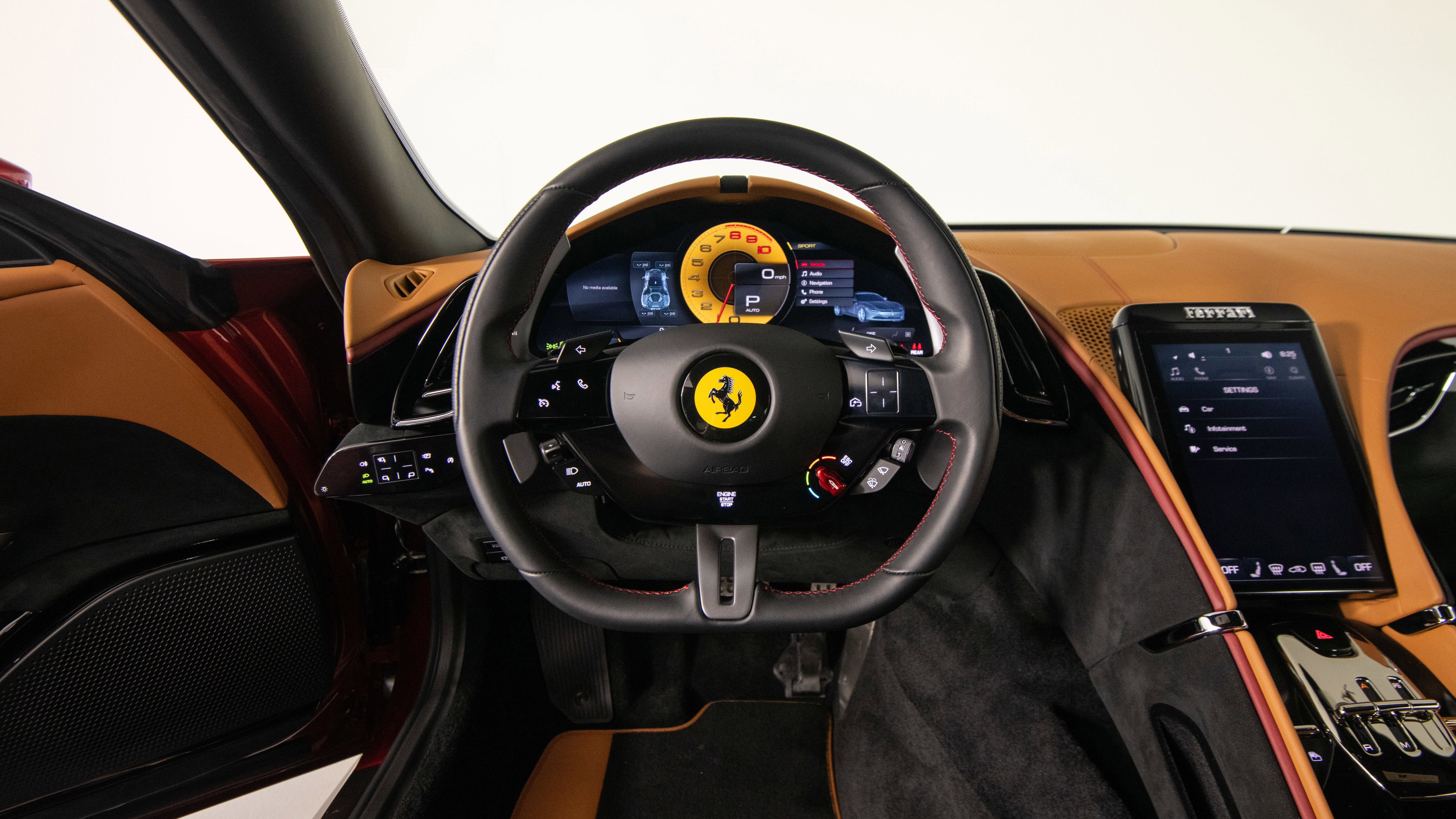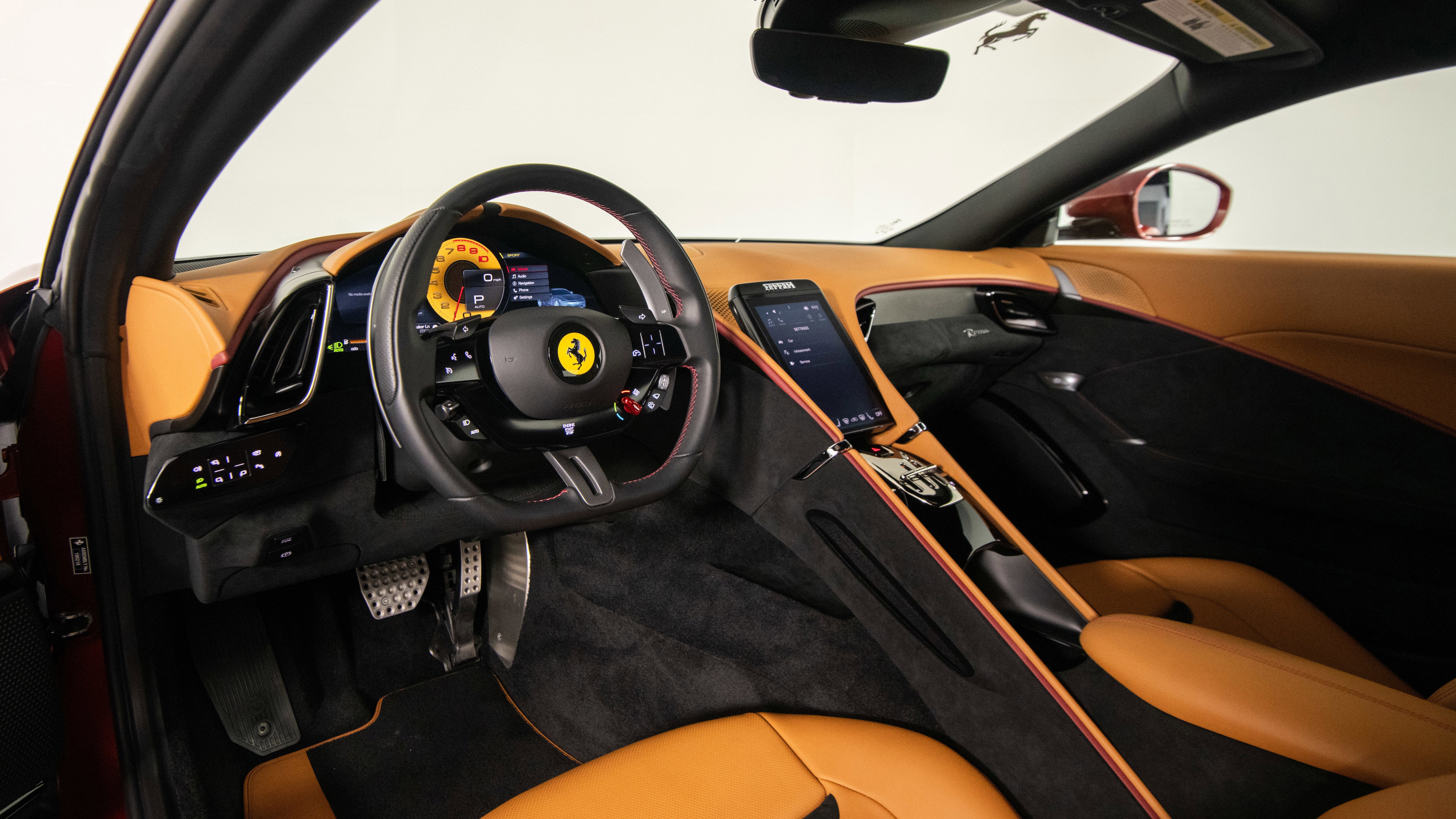 Ferrari Philadelphia is pleased to offer this 2022 Ferrari Roma with only 200 miles. This vehicle is under the Ferrari Certified Pre-Owned Program. The Ferrari Roma, the mid-front-engine 2+ coupe of the Prancing Horse, features refined proportions and timeless design combined with unparalleled performance and handling. With its distinctive flair and style, the car is a contemporary representation of the carefree, pleasurable way of life that characterized Rome in the 1950s and '60s. Its 3.9L Twin Turbocharged V8 has an output of 612hp at 7500 rpm and is coupled with the new 8-speed DCT gearbox that was introduced on the SF90 Stradale. The exterior color of this Ferrari is hand-finished in the Ferrari Historical Color Rosso Fiorano complemented by a Cuoio leather interior. The options on this Roma include: