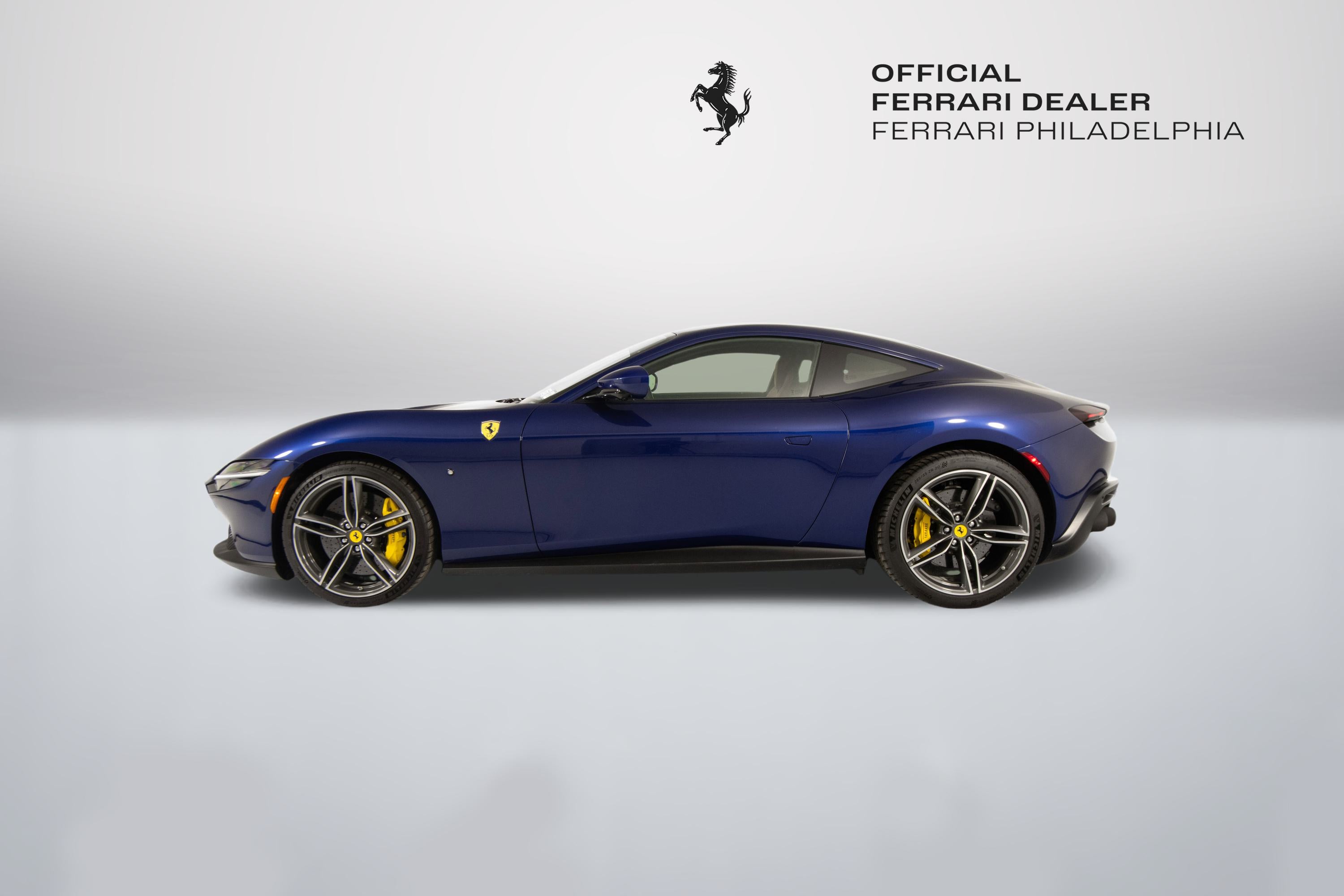 Ferrari Philadelphia is pleased to offer this 2021 Ferrari Roma with only 7,880 miles. This vehicle is under the Ferrari Certified Pre-Owned Program. The Ferrari Roma, the mid-front-engine 2+ coupe of the Prancing Horse, features refined proportions and timeless design combined with unparalleled performance and handling. With its distinctive flair and style, the car is a contemporary representation of the carefree, pleasurable way of life that characterized Rome in the 1950s and '60s. Its 3.9L Twin Turbocharged V8 has an output of 612hp at 7500 rpm and is coupled with the new 8-speed DCT gearbox that was introduced on the SF90 Stradale. The exterior color of this Ferrari is hand-finished in Blu Tour De France 70 complemented by a Cuoio leather interior. The options on this Roma include: