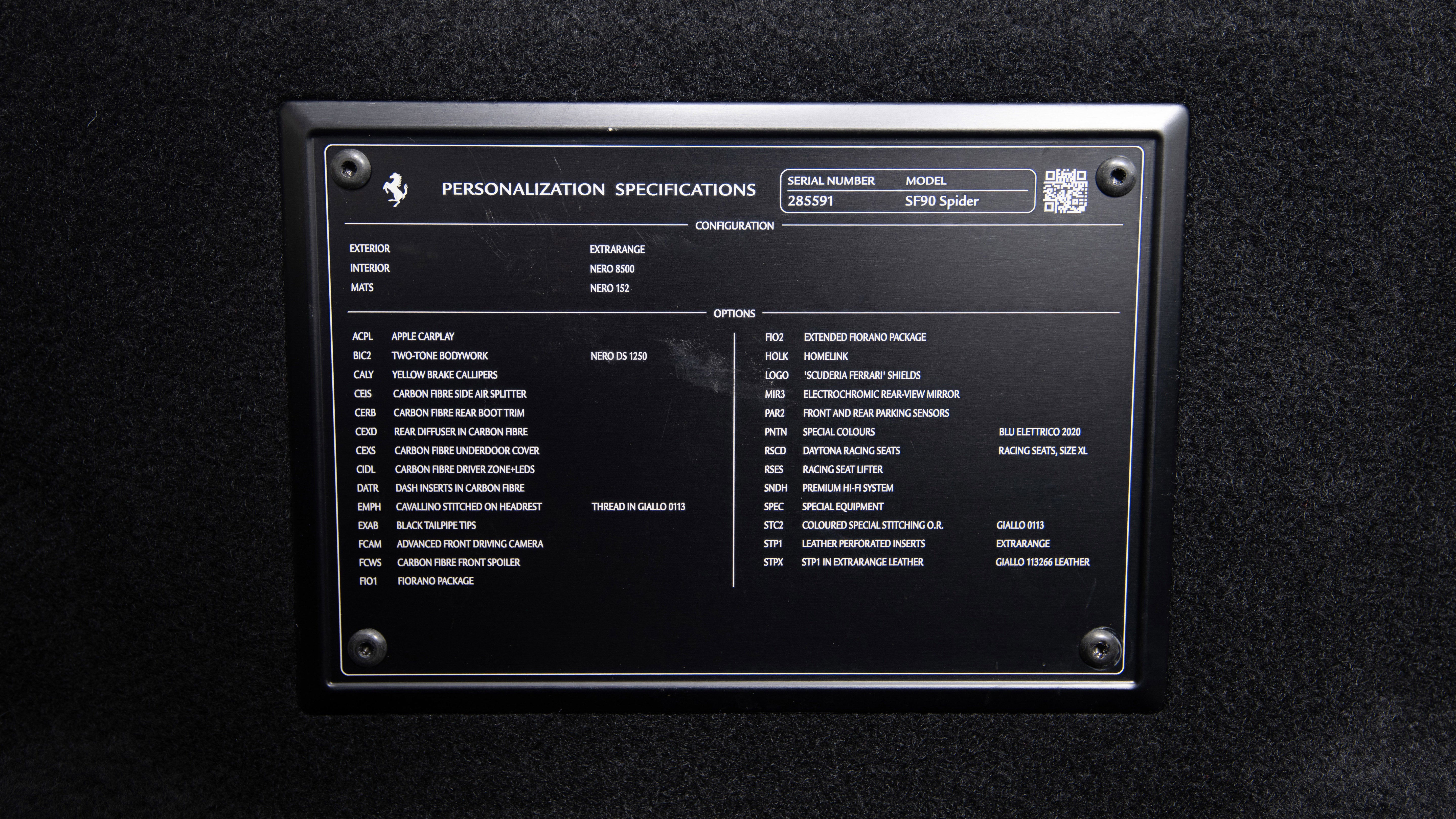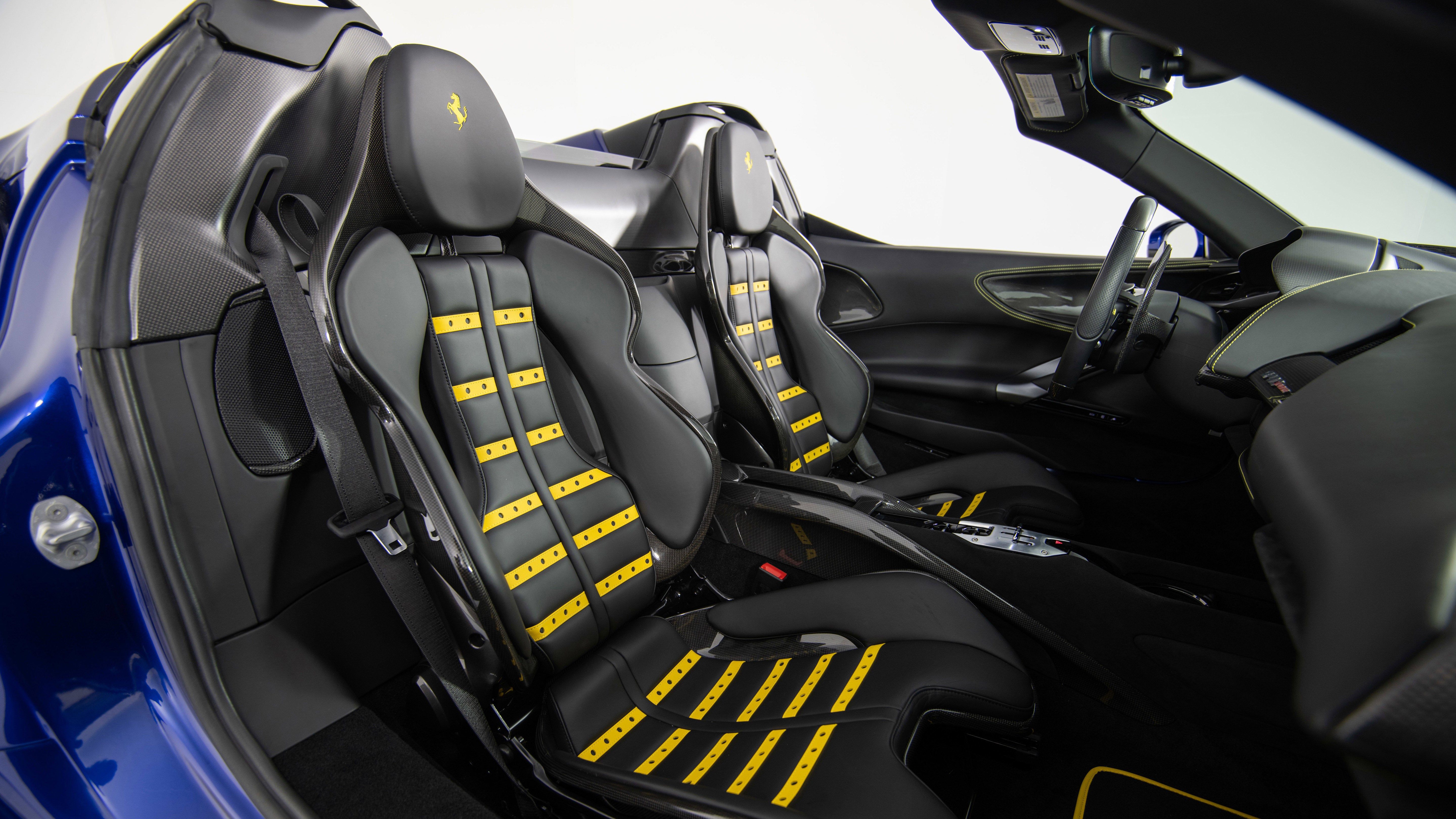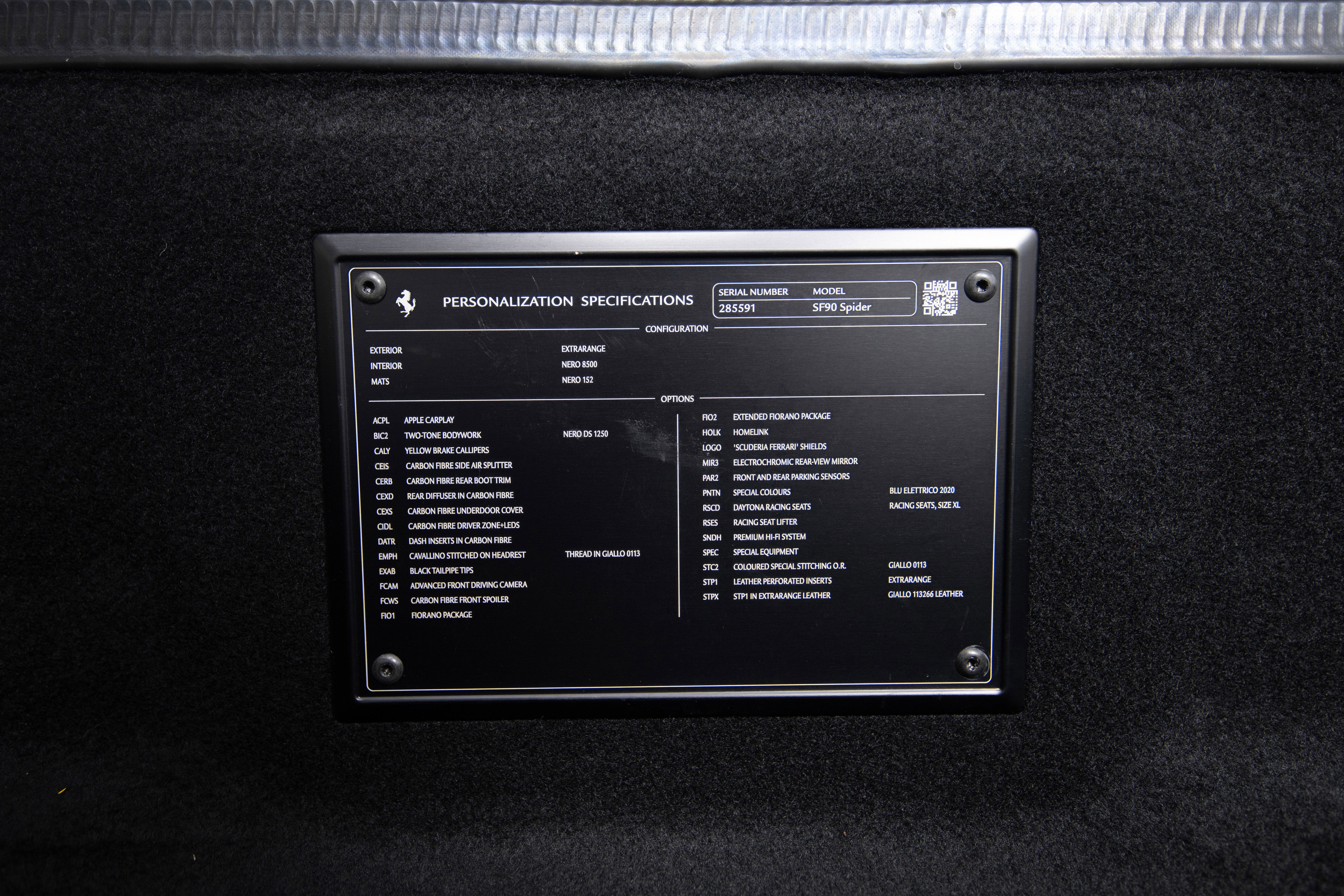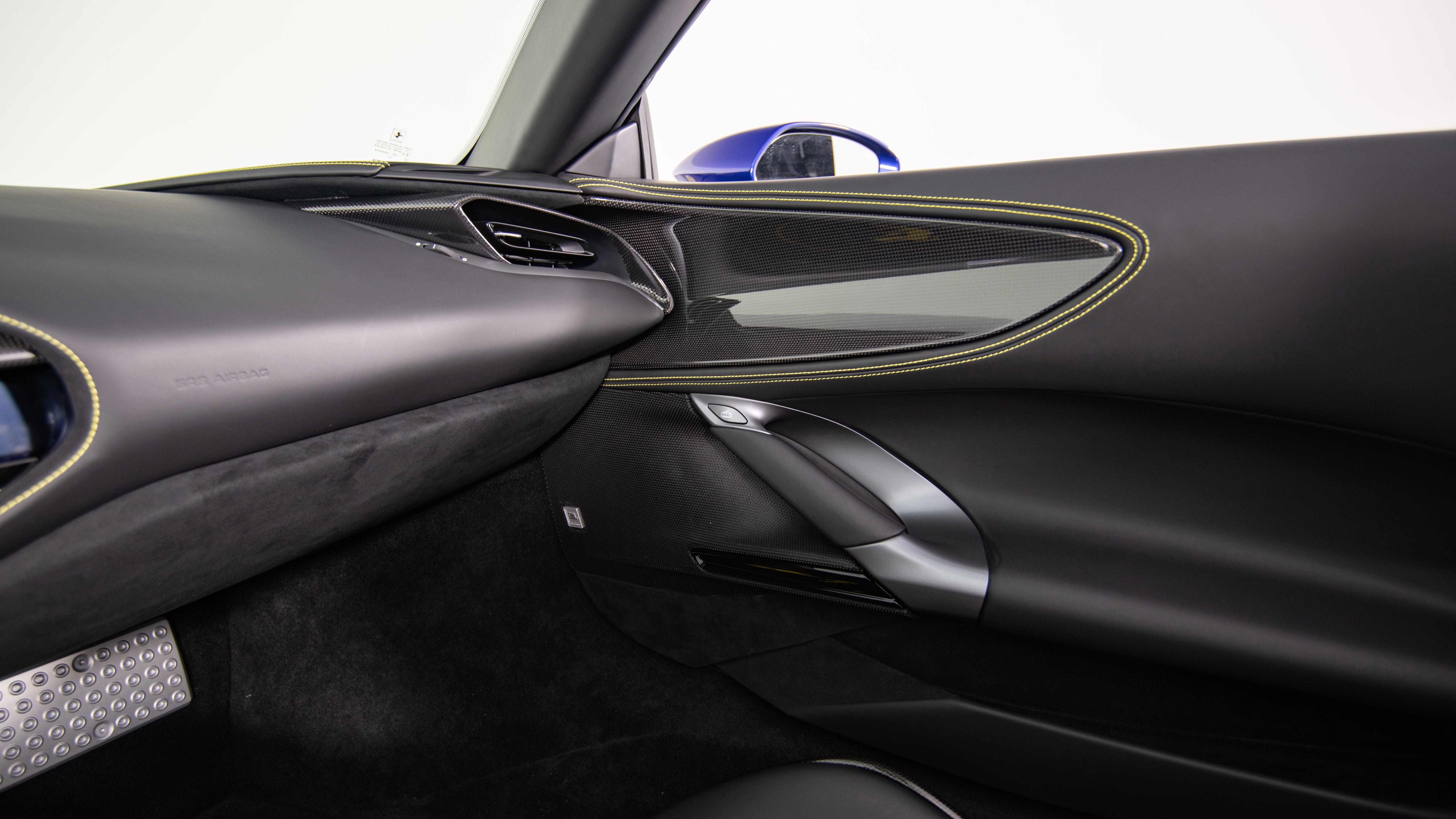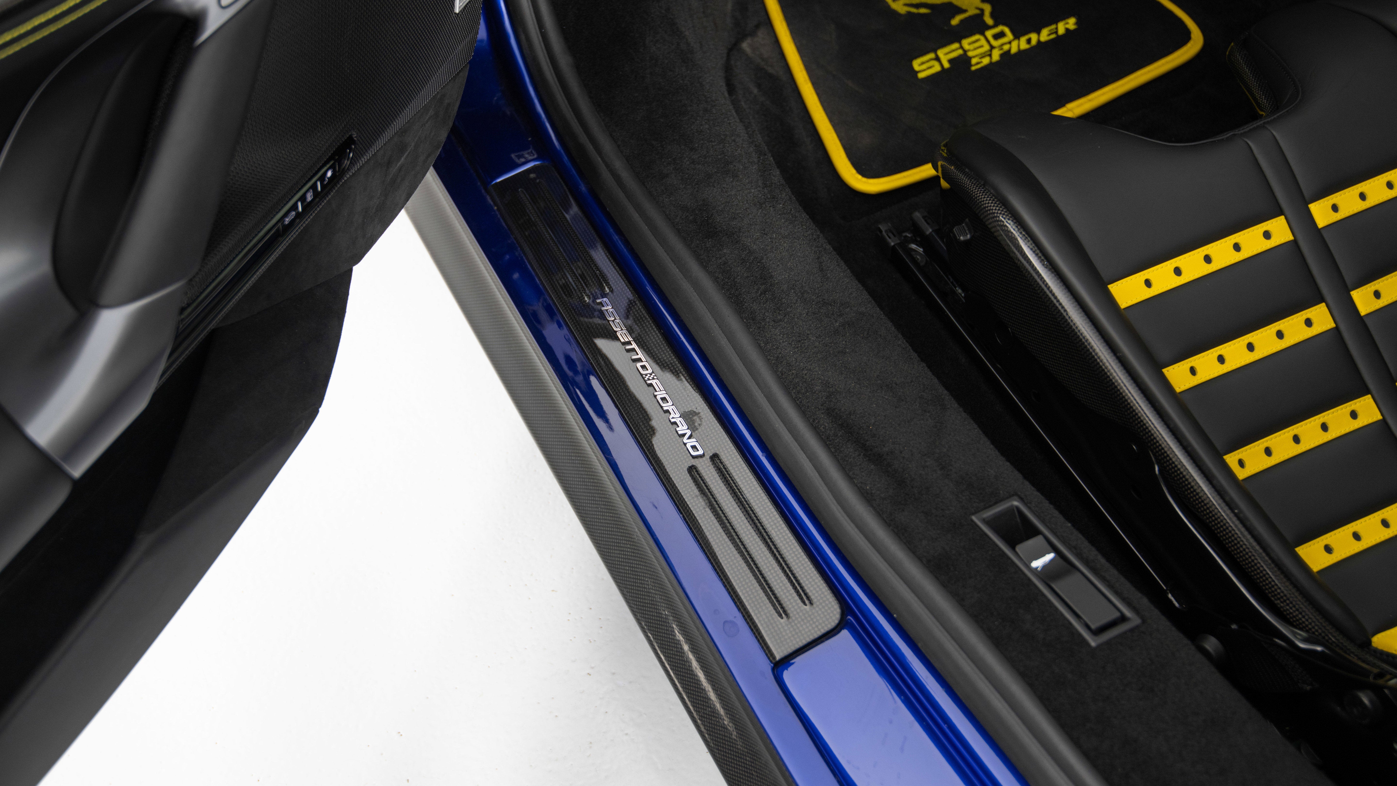 Ferrari Philadelphia is pleased to offer this 2022 Ferrari SF90 Spider with only 914 miles. This vehicle is being sold with the balance of the factory warranty valid until 12/19/2025 & is under the Ferrari Certified Pre-Owned Program. The Ferrari SF90 Spider is a groundbreaking plug-in hybrid convertible, setting new benchmarks in performance and technology. Equipped with a 4.0-liter twin-turbo V8 engine and three electric motors, it delivers a combined total of 1,000 horsepower, making it the most powerful production Ferrari to date. The SF90 Spider accelerates from 0 to 62 mph in just 2.5 seconds and reaches a top speed of 211 mph. Its eDrive mode allows for up to 15.5 miles of silent, electric-only driving, showcasing Ferrari's commitment to both performance and sustainability. The retractable hardtop adds versatility, enabling the thrill of open-air driving without compromising the car's aerodynamics or structural rigidity. The exterior color of this Ferrari is hand-finished in Blu Elettrico complemented by a Nero leather interior. The options on this SF90 Spider include:
