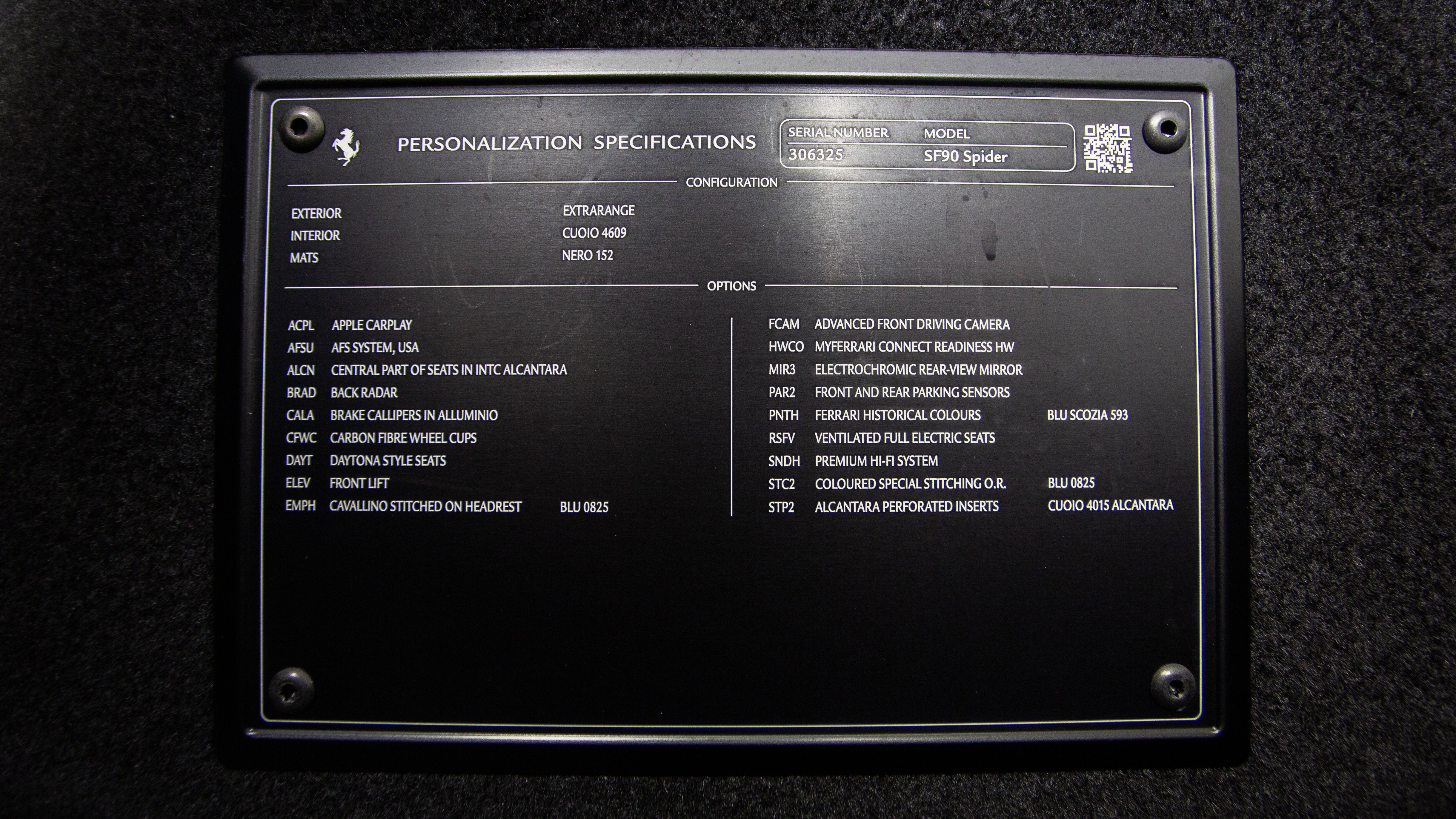 Ferrari Philadelphia is pleased to offer this 2024 Ferrari SF90 Spider with only 161 miles. This vehicle is being sold with the balance of the factory warranty valid until 06/11/2027 & is under the Ferrari Certified Pre-Owned Program. The Ferrari SF90 Spider is a groundbreaking plug-in hybrid convertible, setting new benchmarks in performance and technology. Equipped with a 4.0-liter twin-turbo V8 engine and three electric motors, it delivers a combined total of 1,000 horsepower, making it the most powerful production Ferrari to date. The SF90 Spider accelerates from 0 to 62 mph in just 2.5 seconds and reaches a top speed of 211 mph. Its eDrive mode allows for up to 15.5 miles of silent, electric-only driving, showcasing Ferrari's commitment to both performance and sustainability. The retractable hardtop adds versatility, enabling the thrill of open-air driving without compromising the car's aerodynamics or structural rigidity. The exterior color of this Ferrari is hand-finished in Blu Scozia complemented by a Cuoio leather and Alcantara interior. The options on this SF90 Spider include: