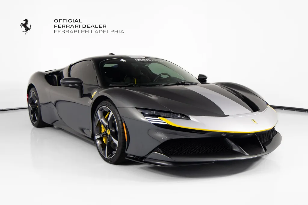 Ferrari Philadelphia is pleased to offer this 2023 Ferrari SF90 Stradale with only 2,489 miles. This vehicle is being sold with the balance of the factory warranty valid until 03/15/2026 & is under the Ferrari Certified Pre-Owned Program. The Ferrari SF90 Stradale is the pinnacle of automotive engineering, blending high-performance with efficiency. With over 1,000 horsepower from its hybrid powertrain, it delivers exhilarating acceleration and top speeds. Its aerodynamic design and advanced technology make it a masterpiece of both performance and luxury, setting a new standard for hypercars. The exterior color of this Ferrari is hand-finished in Grigio Silverstone complemented by a Nero leather and alcantara interior. The options on this SF90 Stradale include: