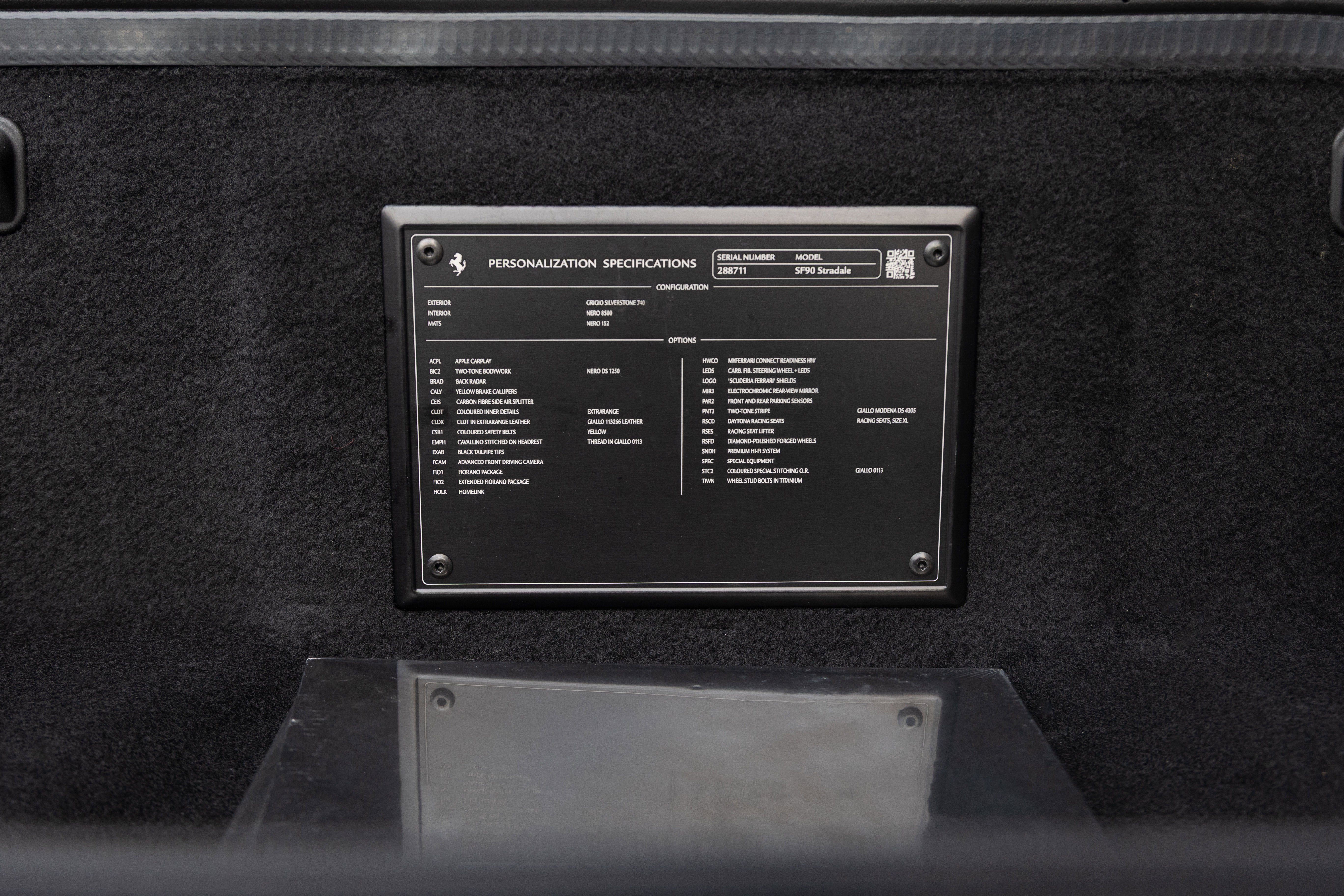 Ferrari Philadelphia is pleased to offer this 2023 Ferrari SF90 Stradale with only 2,437 miles. This vehicle is being sold with the balance of the factory warranty valid until 03/15/2026 & is under the Ferrari Certified Pre-Owned Program. The Ferrari SF90 Stradale is the pinnacle of automotive engineering, blending high-performance with efficiency. With over 1,000 horsepower from its hybrid powertrain, it delivers exhilarating acceleration and top speeds. Its aerodynamic design and advanced technology make it a masterpiece of both performance and luxury, setting a new standard for hypercars. The exterior color of this Ferrari is hand-finished in Grigio Silverstone complemented by a Nero leather and alcantara interior. The options on this SF90 Stradale include: