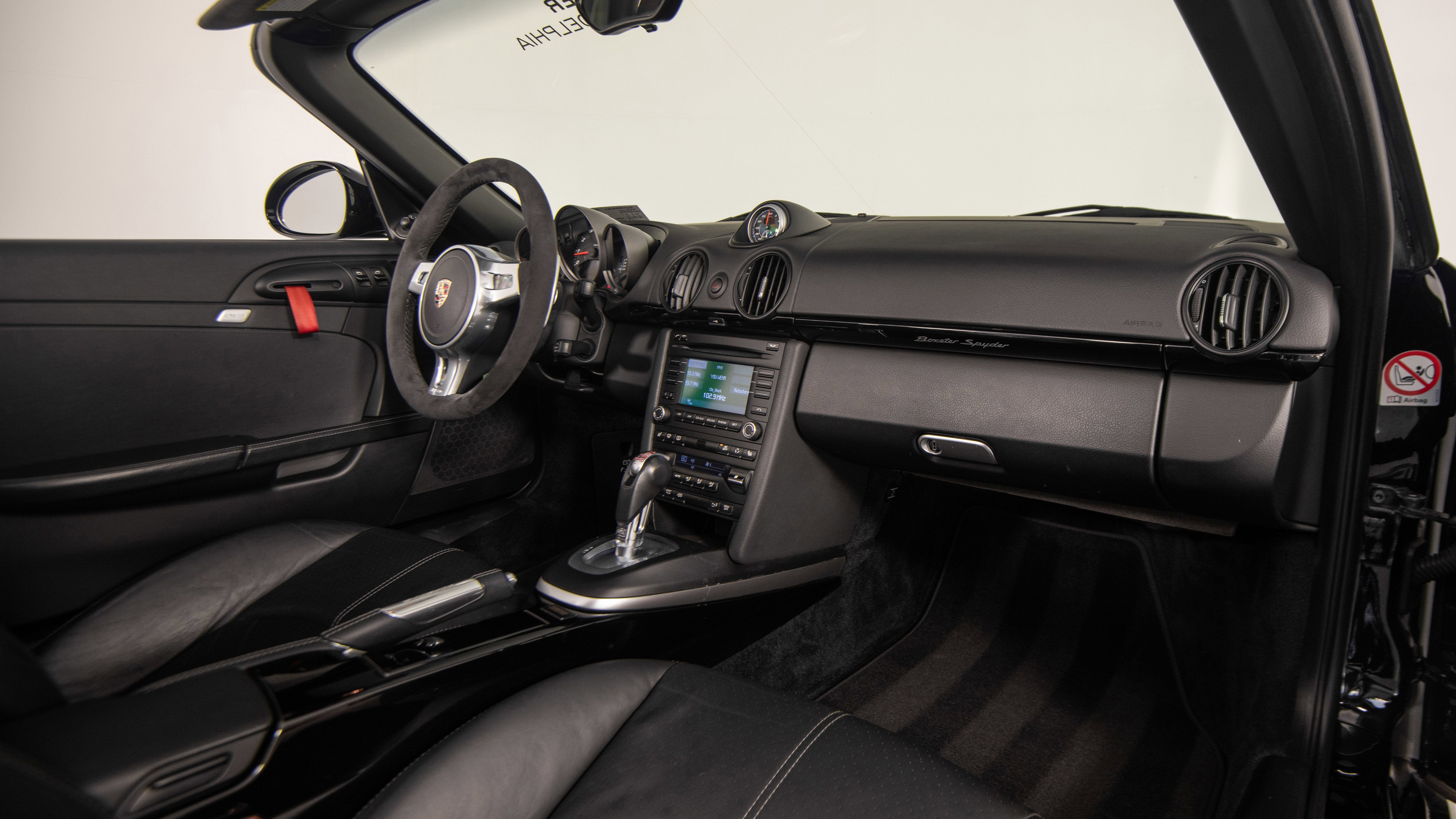 Ferrari Philadelphia is pleased to offer this 2011 Porsche Boxter Spyder with only 34,249 miles. This vehicle is out of its original factory warranty and is being sold As-Is. The exterior color of this Porsche is finished in Black complemented by a Black leather interior. The options on this Boxter Spyder include: